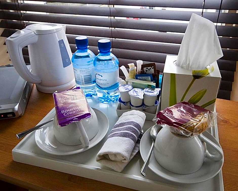 Rooms feature a large flat-screen Smart TV with Freeview TV channels, tea/coffee making facilities and a complimentary selection of biscuits, chocolates and sweets. Rooms also include free high-speed broadband WiFi and individual heating control. A compact en suite shower room and complimentary toiletries are included. All rooms are nonsmoking, outward facing and accessible by elevator.